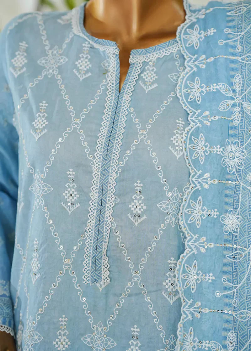 3 Piece Sky Blue Color Embroidered Lawn Shirt with Embroidered Trouser & Dupatta
