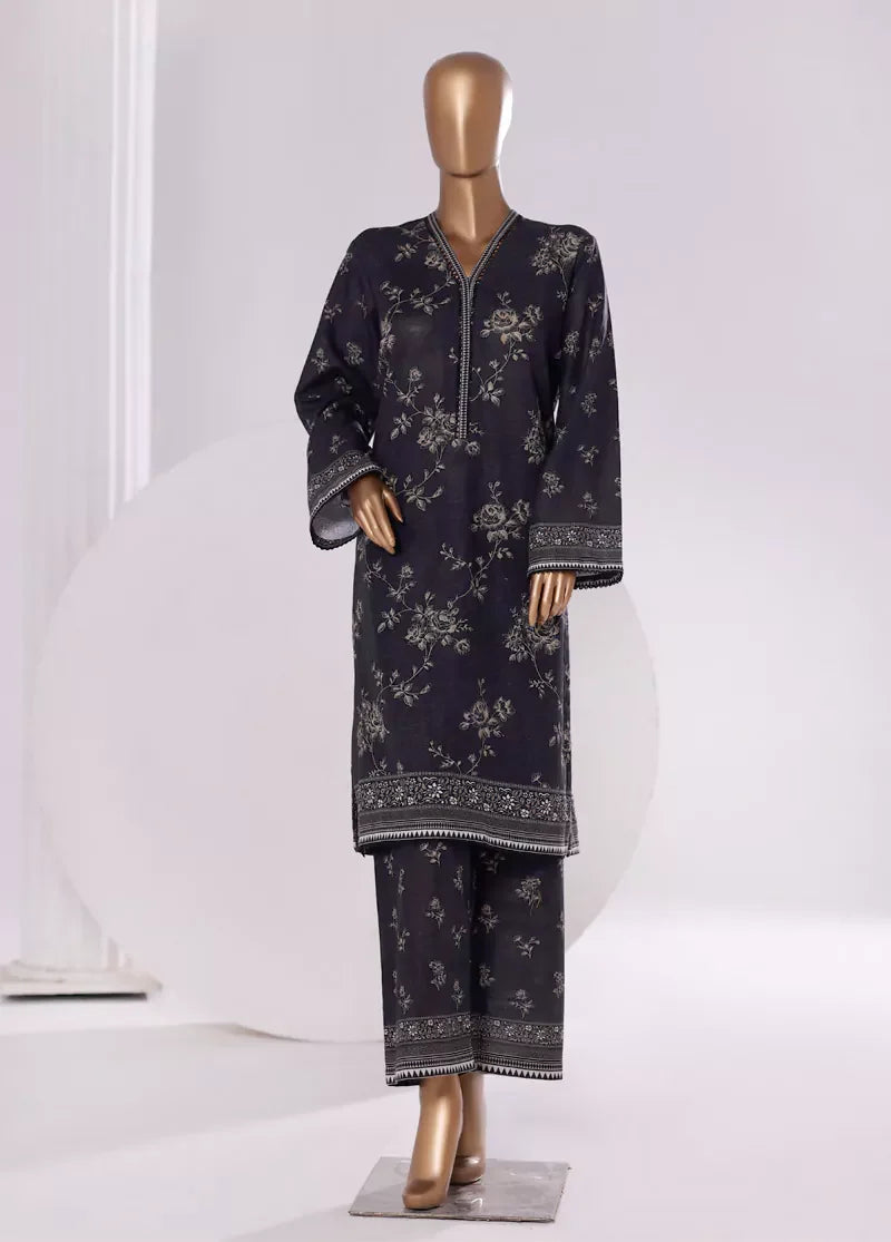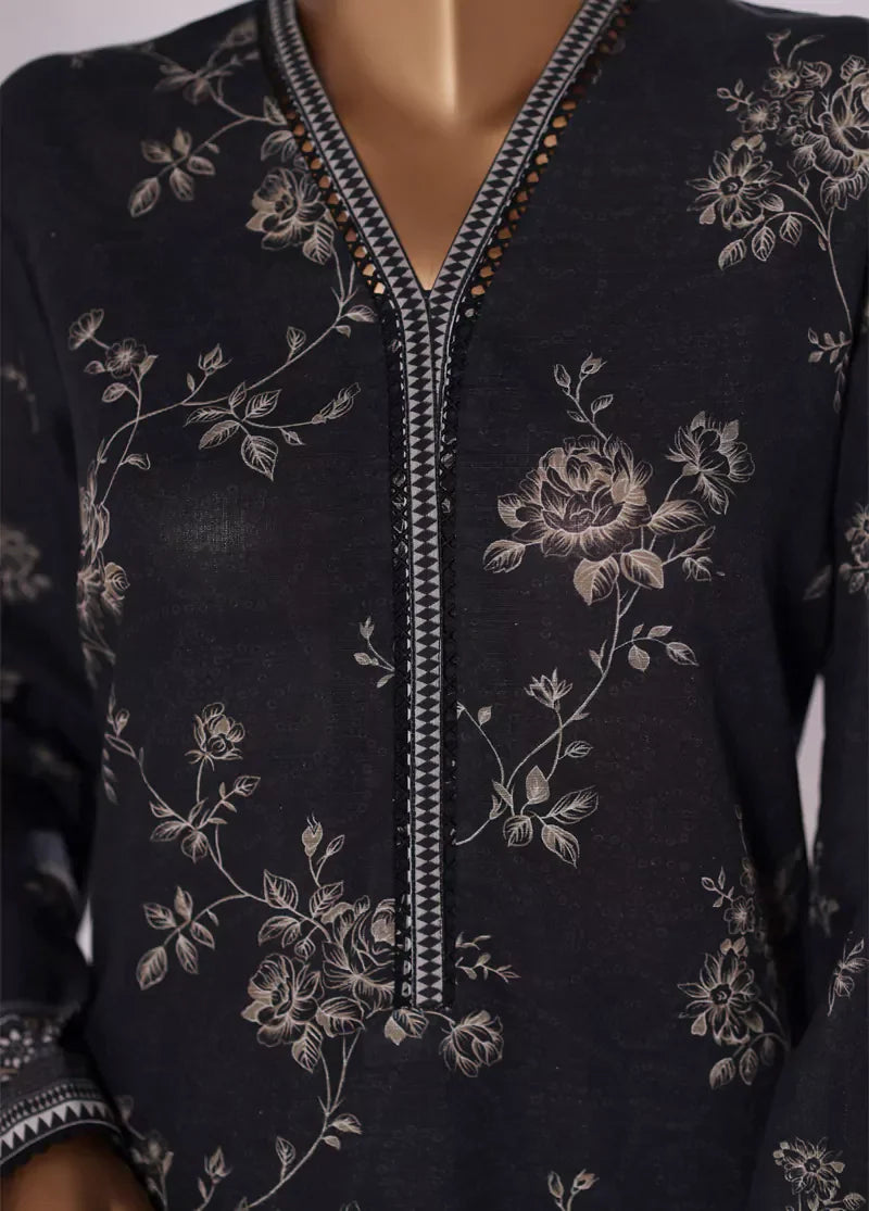 2 Piece Printed Black Khaddar Shirt & Trouser