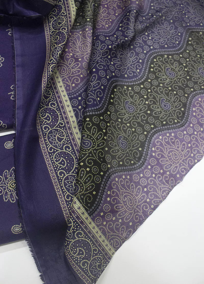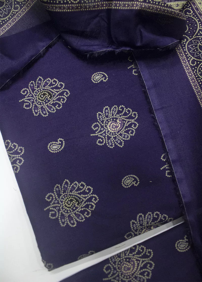 3 Piece Printed Purple Color Unstitched Suit