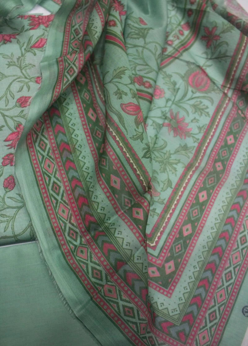 3 Piece Printed Mint Green Color Unstitched Suit
