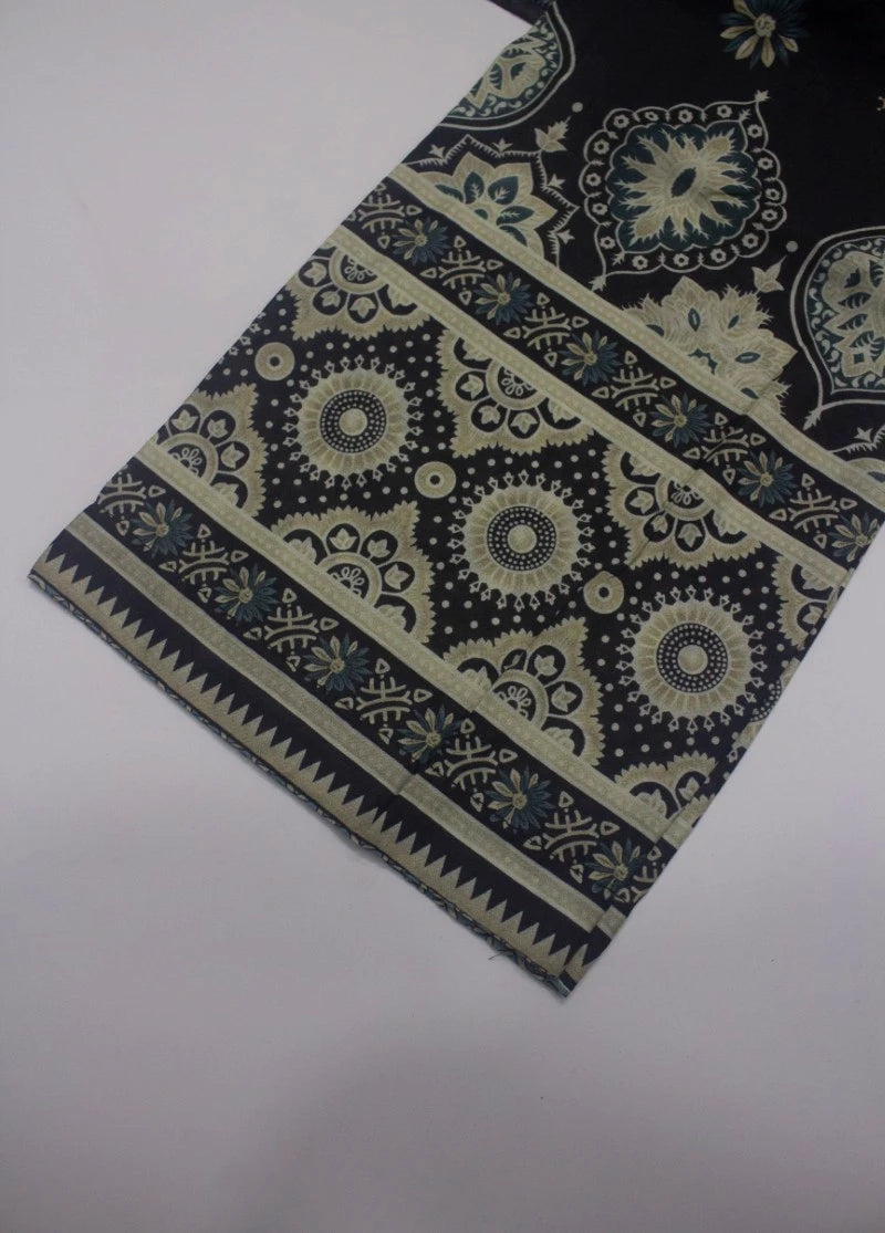 3 Piece Printed Stitched Black Color Lawn Shirt with Trouser & Dupatta