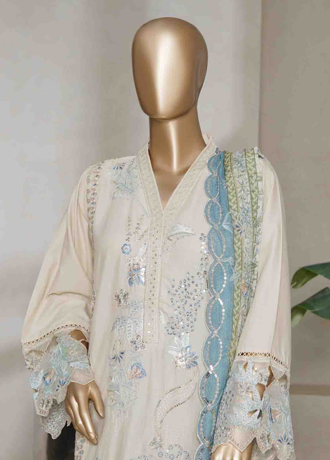 NSMED-0143- 3 Piece Cotton Embroidered Stitched Suit