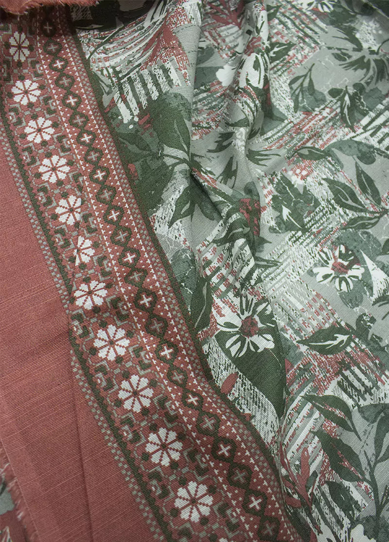 3 Piece Peonny Peach Color Khaddar Printed UnStitched Suit with Printed Dupatta & Printed Trouser.