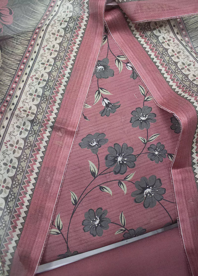 3 Piece Printed Flamingo Pink Color Unstitched Suit