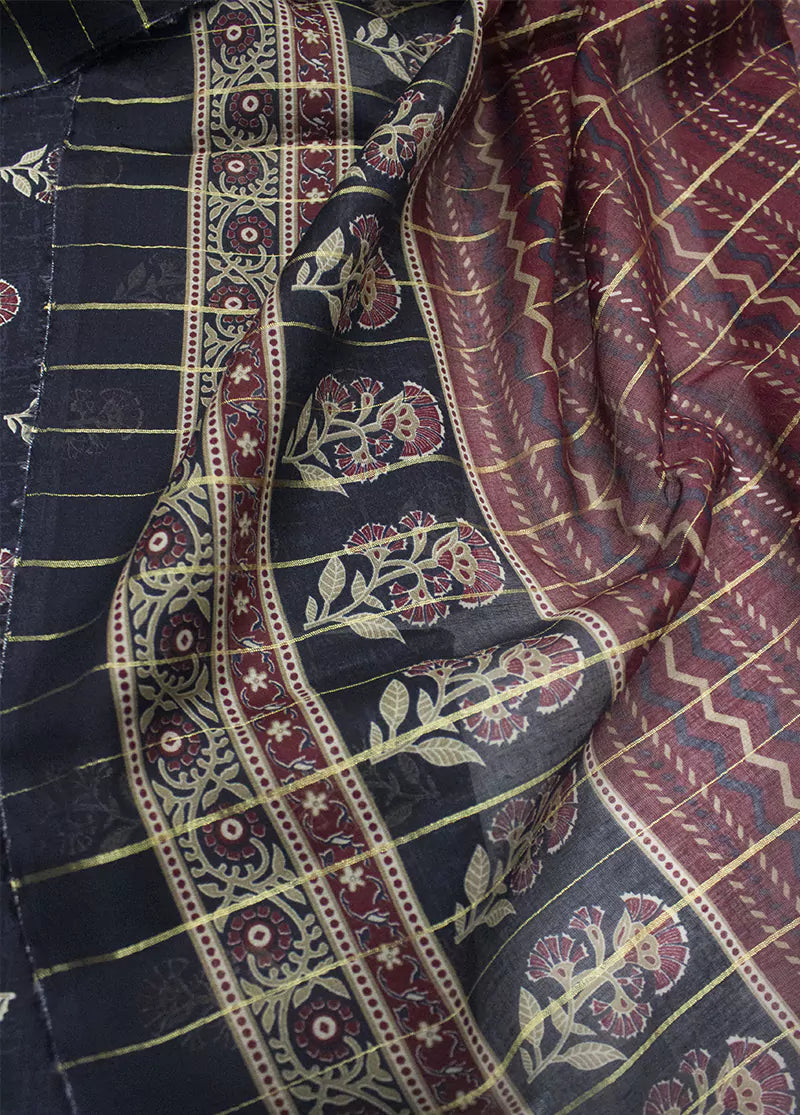 3 Piece Printed Blue Color Unstitched Suit