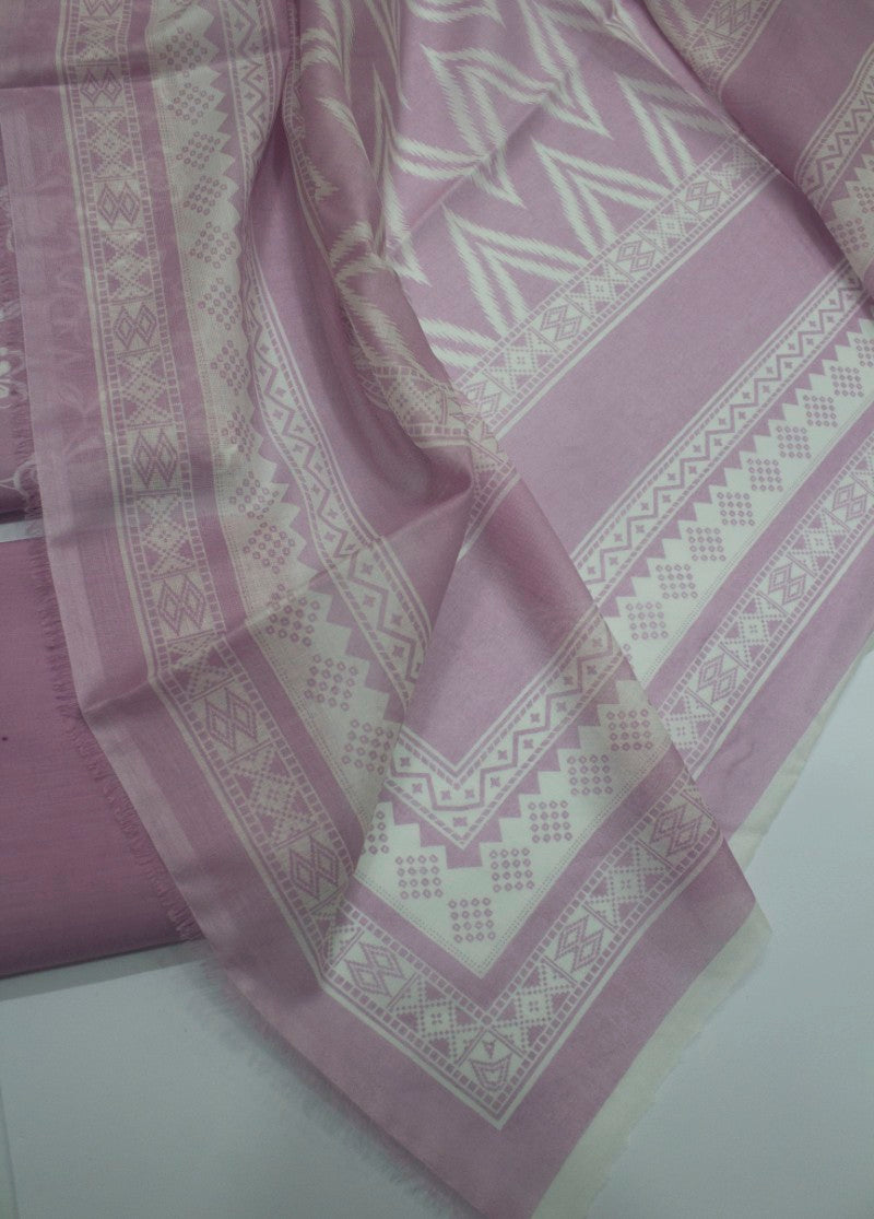 Bin Saeed Fabrics presents a women's 3 Piece UnStitched Digital Printed Suit in soothing muave. Made from lightweight lawn fabric, this set includes a shirt, trouser, and dupatta, offering breathable comfort ideal for warm weather. The unstitched design allows for a custom fit, perfect for everyday wear in Pakistan.