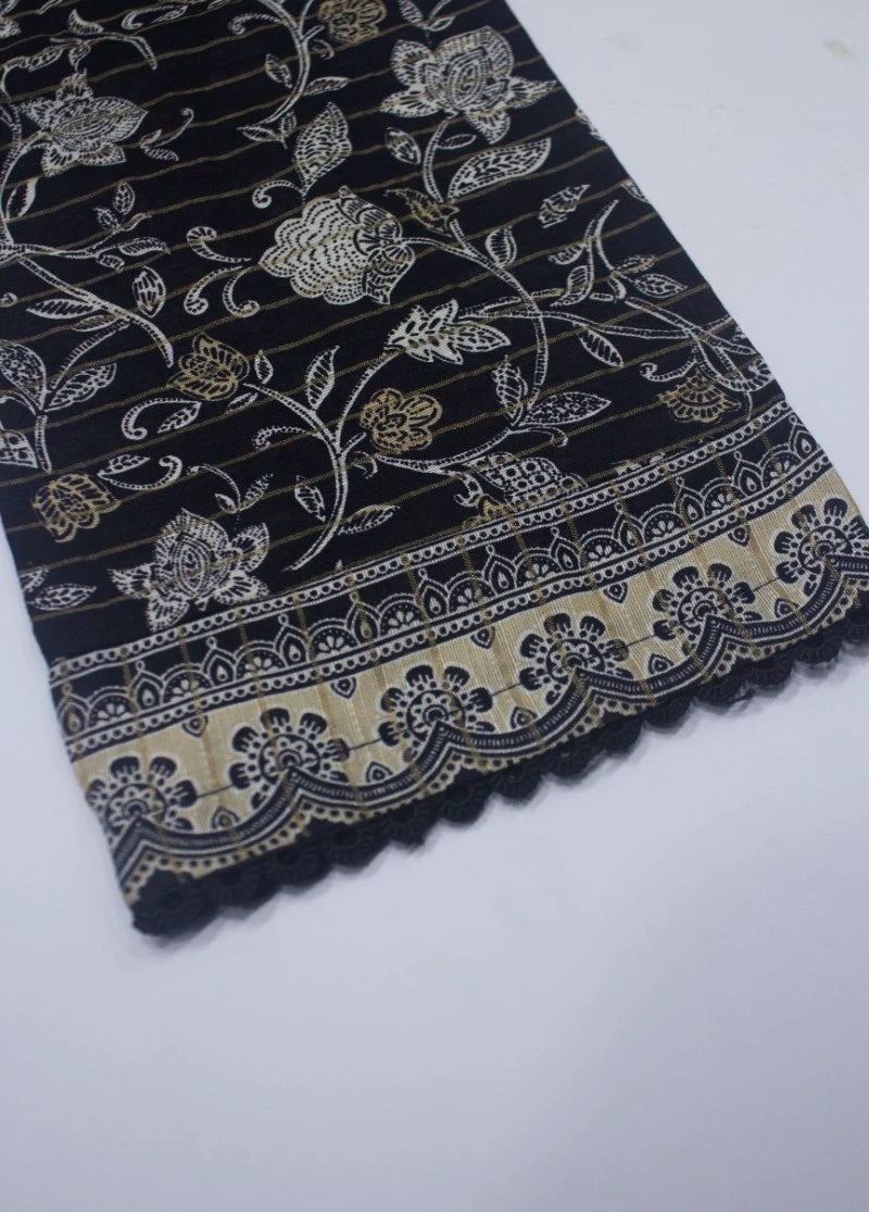 3 Piece Printed Black & White Khaddar Shirt with Trouser & Dupatta