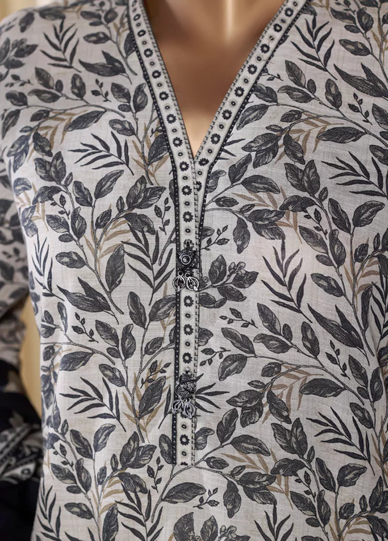 3 Piece Printed Black & White Khaddar Shirt with Trouser & Dupatta